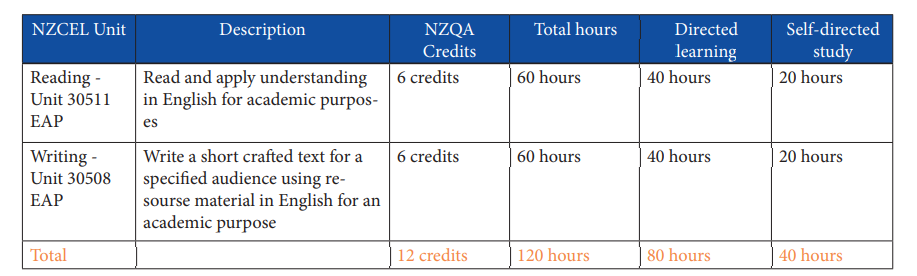 Canterbury College offers two EAP (English for Academic Purposes) modules at Level 3: Reading (unit 30511) and Writing (unit 30508). You need these two units before you can begin studying EAP modules at Level 4: Reading (unit 22751) and Writing (unit 22750). The Level 4 modules provide you with a pathway to university entrance. This is an excellent program for all students who are not yet ready to study EAP Level 4 and who would like an alternative to the IELTS examination. These EAP units are also part of New Zealand Certificate in English Language (NZCEL Level 3, Applied).